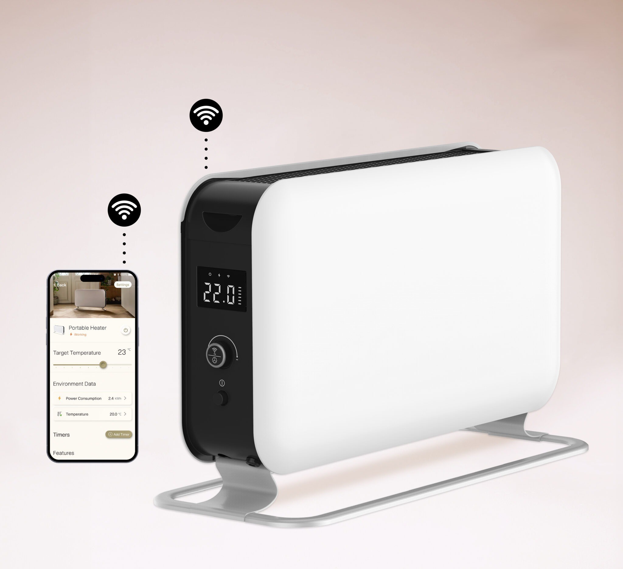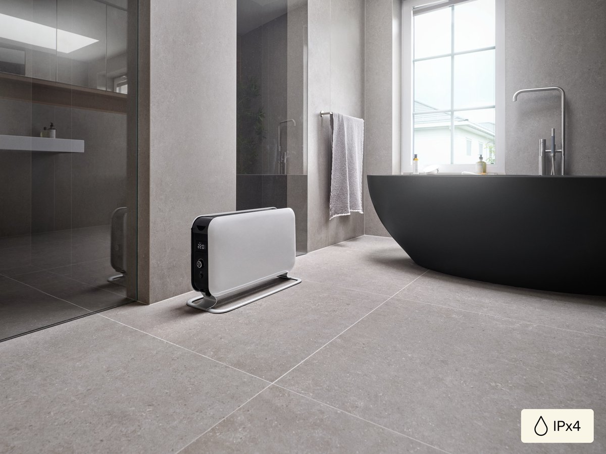 De Mill CO1500MAXWIFI3 is een stijlvolle, draagbare convectorkachel met geïntegreerde WiFi-module. Dankzij het krachtige vermogen van 1500 Watt houdt deze designkachel ruimtes tot circa 22 m² comfortabel verwarmd. Bovendien is hij IPX4-geclassificeerd, waardoor hij ook veilig in de badkamer kan worden gebruikt.