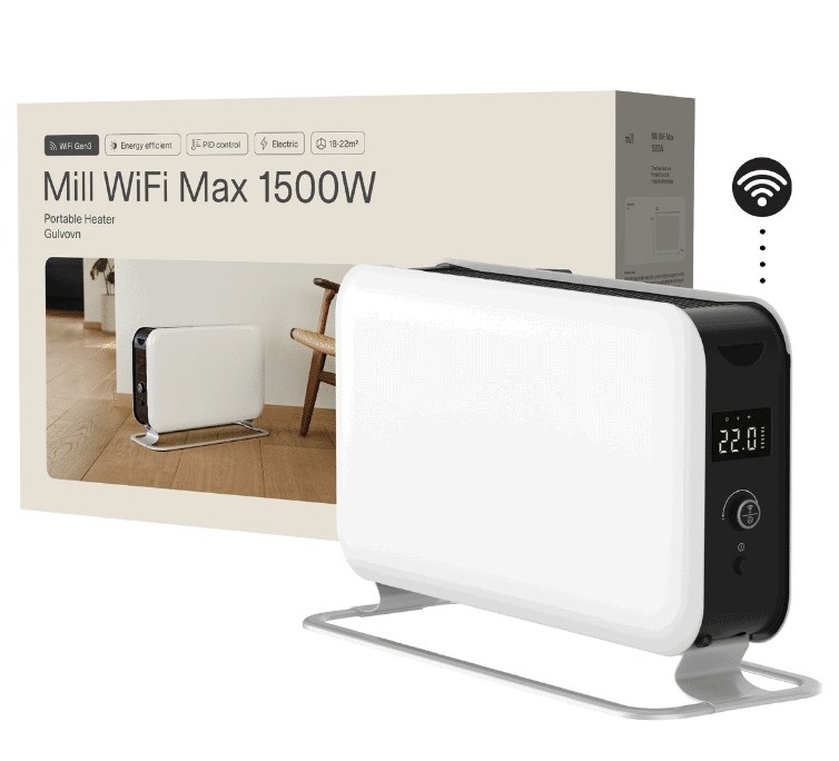 Mill CO1500MAXWIFI3 WiFi Design Convectorkachel – Slim, krachtig en geschikt voor de badkamer De Mill CO1500MAXWIFI3 is een stijlvolle en moderne design convectorkachel die comfort en slimme technologie combineert. Met een vermogen van 1500 watt verwarmt deze convectorkachel ruimtes tot ongeveer 22 m² snel en gelijkmatig. Dankzij de IPX4-classificatie is hij bovendien veilig te gebruiken in de badkamer. Deze generatie 3 convectorkachel van Mill is uitgerust met een geïntegreerde WiFi-module, waardoor u hem overal ter wereld kunt bedienen via de Mill Norway app of via Homey. Vanaf Q4 2024 zal de WiFi3-serie ook compatibel zijn met Google Assistant, Amazon Alexa en Apple HomeKit, zodat u uw verwarming eenvoudig met spraakcommando’s kunt aansturen. Generatie 3 – Slimmere technologie, verbeterde prestaties De Mill CO1500MAXWIFI3 behoort tot de nieuwste generatie convectorkachels van Mill. Dit model biedt tal van hardware- en softwareverbeteringen ten opzichte van vorige generaties. Dankzij de Bluetooth-ondersteuning maakt het toestel automatisch verbinding met uw WiFi-netwerk, ongeacht het type router dat u gebruikt. Daarnaast beschikt de kachel over een kinderslot en een commercieel slot, ideaal voor situaties waarin u niet wilt dat anderen de instellingen wijzigen (bijvoorbeeld bij verhuur). De ingebouwde slimme algoritmen leren hoe snel of langzaam de kamertemperatuur stijgt of daalt, zodat de kachel precies weet wanneer hij moet beginnen met verwarmen om de gewenste temperatuur op het geplande tijdstip te bereiken. Deze functies zijn zowel op het toestel zelf als via de app in te stellen. Bediening via de Mill Norway App Met de Mill Norway app hebt u volledige controle over al uw heaters, waar u zich ook bevindt. De app is ontworpen om uw dagelijkse routine te ondersteunen en energie te besparen zonder comfortverlies. Elke heater kan gekoppeld worden aan een specifiek huis en kamer, waardoor u eenvoudig een overzicht behoudt van al uw ruimtes. Belangrijkste functies van de app: Bediening van al uw heaters op meerdere locaties (woning, kantoor, vakantiehuis, garage, enz.), allemaal met één gebruikersaccount. Wekelijkse programma’s instellen met vier modi: Comfort, Sleep, Away en Off. Voor elke kamer kunt u de temperatuur afzonderlijk instellen per modus. Handmatige aanpassing mogelijk per kamer of voor het hele huis, zonder uw programma te wijzigen. Vakantiemodus voor energiebesparing wanneer u afwezig bent: de app verhoogt automatisch de temperatuur vóór uw thuiskomst. Deel uw woning met andere gezinsleden voor gedeelde bediening.