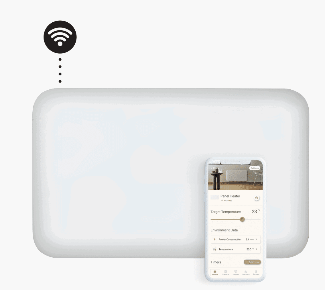 Mill Invisible Smart WiFi-paneelverwarming – slim, slank en stijlvol. Eenvoudig zelf te installeren. De Mill PA700WIFI4 is een stijlvolle stalen paneelverwarming met geïntegreerde WiFi-module, ideaal voor middelgrote ruimtes van 8 – 12 m². Met een vermogen van 700 W zorgt deze heater voor een snelle en gelijkmatige warmte, terwijl hij energiezuinig en stil werkt. Dankzij de slimme app-bediening kan het energieverbruik eenvoudig worden gemonitord en geoptimaliseerd. Perfect voor elke kamer, inclusief de badkamer (IPX4). Ontworpen in Noorwegen met 5 jaar garantie. Scandinavisch design De bekroonde Mill Invisible Smart WiFi-paneelverwarming combineert geavanceerde technologie met een elegant, minimalistisch ontwerp. Met zijn slanke, gebogen frontpaneel past hij naadloos in elk interieur, als een discrete maar krachtige warmtebron die het design van de kamer versterkt. Energiezuinig comfort De Mill PA700WIFI4 is een stille en efficiënte verwarming die zachte, behaaglijke warmte biedt zonder energie te verspillen. Het lage oppervlak maakt hem veilig voor kinderen en huisdieren, terwijl het ultraslanke profiel en de oververhittingsbeveiliging voor gemoedsrust zorgen, zelfs ’s nachts. Slimmer verwarmen, slimmer leven Met de Mill-app bedient u uw verwarming overal en stelt u routines in voor optimaal comfort. Innovaties zoals: Mill Predictive Heating™ leert hoe uw huis opwarmt en zorgt dat de kamer op tijd klaar is. Mill PID Wattage Tech™ handhaaft stabiele temperaturen en minimaliseert energieverbruik. Wattage Cap voorkomt overmatig stroomverbruik. Open Window Detection pauzeert automatisch bij plotselinge temperatuurdalingen. Samen kunnen deze functies tot 30 % energie besparen ten opzichte van conventionele verwarmingen. Verbonden en klaar voor de toekomst Compatibel met Matter (Google Home, Amazon Alexa, Apple HomeKit), Zigbee 3.0 en Homey. Een van de meest toekomstbestendige slimme verwarmingsoplossingen op de markt.