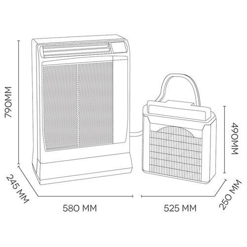 Mobiele Split Airco Argoclima Ulisse 13 DCI ECO WiFi is een unieke Plug & Play airco. Argoclima Ulisse is slechts 24 cm diep dus bijna overal te plaatsen. Deze split airconditioner is eenvoudig zelf te installeren dankzij de snelkoppelingen. De Argoclima Ulisse WiFi mobiele split airco is geschikt voor het koelen van een ruimte tot 40 m² (100 m³), de Plug & Play split airco is afgevuld met het milieuvriendelijke R32 koelmiddel. Met een koelcapaciteit van 4.0 kW is airco Argoclima Ulisse een van de grootste mobiele airco's wat betreft koeling. Split Airco Argoclima Ulisse 13 DCI ECO WiFi is een mobiele airco zonder slang. De mobiele airco heeft geen luchtslang nodig, maar gebruikt slechts een dunne koelleiding.