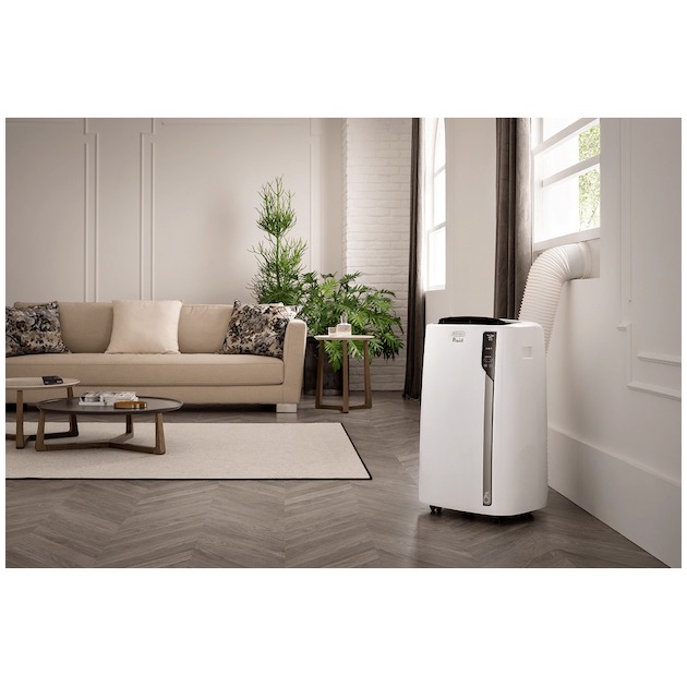 DeLonghi PAC98EL Eco Real Feel is een mobiele airconditioner die beschikt over een capaciteit van 2,7 kW en erg stil is. Een energiezuinige mobiele airco (energieklasse A) met Real Feel innovatie. De DeLonghi PAC98EL eco Real Feel portable airco heeft een fraaie vormgeving en een afstandsbediening met display. Airco geleverd met een afvoerslang voor warme lucht. Zijn koelmiddel behoort tot de nieuwste generatie, het milieuvriendelijke R290.