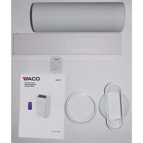 De Vaco VAC12W is een kleine mobiele airconditioning, ontworpen voor kamers waar de ruimte voor het opstellen en aansluiten van een airconditioner beperkt is. Ondanks de kleine afmetingen kenmerkt de mobiele airco zich door een hoog rendement, energieklasse A, en een laag geluidsniveau. De belangrijkste voordelen: Koelt, droogt en ventileert efficiënt Vermogen past zich automatisch aan voor ruimtes tot 34 m² De airconditioner heeft een laag geluidsniveau in de laagste ventilatorstand Herbruikbare luchtfilters Intelligente nachtmodus Droogt automatisch in de koelmodus (samen met de afvoer van hete lucht) Eenvoudig te bedienen met Wifi Compatible: IOS, Android Spraakbesturing met spraakassistenten: Google Assistant / Google Home en Amazon Alexa / Amazon Echo Werkingsmodus Vaco VAC12W: Koeling: Het gebruik van warmtepomptechnologie zorgt voor een zeer efficiënt gebruik van elke Watt aan energie. Zijn koelcapaciteit van 3.5 kW is voldoende om een ruimte tot 34 m² effectief te koelen, tegelijkertijd is het maximale stroomverbruik slechts 1.200 Watt. Ontvochtiging: Een zeer nuttige functie bij een verhoogde luchtvochtigheid. Een nieuwbouwhuis, herfstregens, of vochtig weer, deze omstandigheden zorgen ervoor dat de lucht verzadigd is met vocht. De Vaco VAC12W airconditioner kan tot 36 liter condenswater per dag uit de lucht halen. Ventilatie en reiniging: De mobiele airco is uitgerust met een wasbaar filter dat de hoeveelheid stof in de ruimtes vermindert. De ventilator zorgt voor een luchtstroom tot 300 m³ per uur. Standaarduitrusting van de Vaco VAC12W mobiele airconditioner: Luchtafvoerslang Uitlaatmondstuk Raamuitlaat mondstuk Afstandsbediening