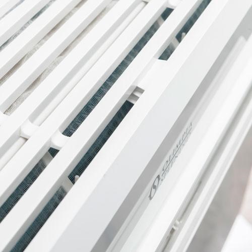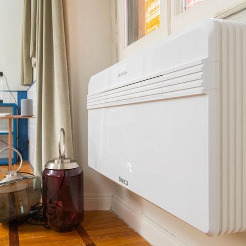 Design airco zonder buitenunit Olimpia Splendid Unico Pro Inverter 12 HP A+ kunt u, én mag u zelf monteren. Een monoblock airco met inverter techniek: u bespaart tot 30% energie ten opzichte van traditionele airconditioners. De Inverter airco is geschikt voor koelen én bijverwarmen van een ruimte tot 35 m². Met deze Unico Pro Inverter 12 HP A+ zelfmontage airco bespaart u op kosten voor aanleg én op energiekosten. Géén opzichtige airco unit aan de buitenmuur, enkel twee ventilatiegaten en een klein gat voor de condenswaterafvoer!
