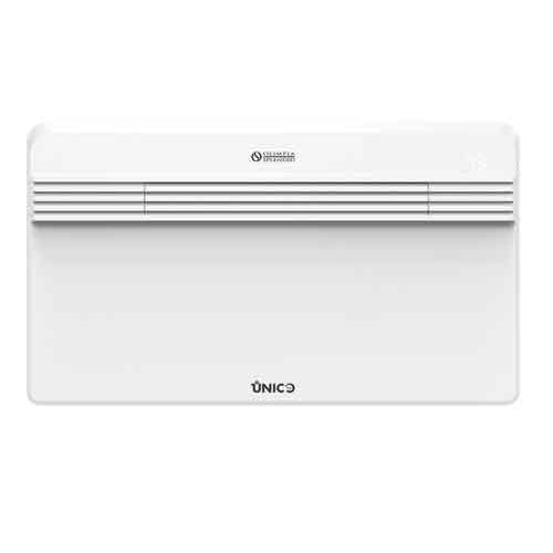 De Inverter airco is geschikt voor een ruimte tot 35 m², de airco kan koelen én verwarmen. Met deze Unico Pro Inverter 12 HP A+ monoblock airco bespaart u op kosten voor aanleg én op energiekosten. Kenmerken van design airco zonder buitenunit Olimpia Splendid Unico Inverter 12 HP A+: Airconditioning eenvoudig zelf installeren. Warmtepomp airco voor koelen en bijverwarmen. Koelvermogen 3.4 kW. Vermogen verwarming: 3.0 kW. Inverter airco: energiebesparing tot 30% door Inverter techniek. Airco zonder buitenunit, dus eenvoudige montage: Unico Pro Inverter 12 HP A+, in een korte tijd installatie van uw airco. Installatie vanuit de binnenruimte, ventilatieroosters vanuit binnen te plaatsen. Installatie zowel onder als boven aan een wand mogelijk. Overzichtelijke afstandsbediening. Airco met verwarming, ondersteuning van de hoofdverwarming in de ruimte. Energieklasse A+ voor koelen én A voor verwarmen. Grote luchtuitblaas voor gelijkmatige luchtstroom in de gehele ruimte. Airco zonder slang, de monoblock airco heeft rechtstreeks een doorvoer door de muur. Diameter van de twee gaten in de wand: Ø 162 of Ø 202 mm. Let op: De standaard meegeleverde luchtroosters hebben een maatvoering van Ø 202 mm. Een klein gat in de wand voor de condenswaterafvoer Ontvochtigingscapaciteit: 1.3 liter/uur = 31.2 liter/dag. (bij 30°C - 90% R.V.) Instelbare ventilator: drie standen. Luchtverplaatsing: 350-390-490 m³/h. De luchtuitblaas is regelbaar. Beveiligingsklasse: IP20. Airconditioning functies: ECO stand: de airco zorgt automatisch voor maximale energiebesparing. Energielabel A+ in cooling mode. Ventilatorstand: alleen ventileren mogelijk. Ontvochtigen stand: alleen ontvochtigen mogelijk. Automatische stand: automatisch koelen of bijverwarmen naar de ingestelde temperatuur. Slaapstand voor stille werking: voor een goede nachtrust neemt koeling geleidelijk af met maximaal twee graden en het geluid wordt gedempt. Warmtepomp: de monoblock airco is uitgerust met verwarming, dus naast koelen ook de mogelijkheid om de ruimte bij te verwarmen naast de hoofdverwarming. 24 uurs timer.