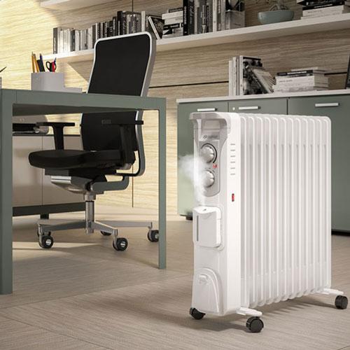 Elektrische verwarming met kleine, geïntegreerde luchtbevochtiger Olimpia Splendid Caldorad Humi 13 zorgt voor gelijkmatige, aangename warmte in een ruimte tot 35 m² . Olimpia Splendid olieradiatoren hebben een stille werking.