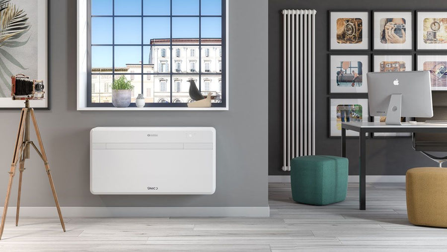 De Olimpia Splendid Unico EVO 30 HP EVAN is een zelfmontage warmtepomp airco zonder buitenunit die u zelf kunt en mag installeren. Deze geavanceerde monoblock airco werkt met het milieuvriendelijke koelmiddel R32, met een lage GWP-waarde, voor een lagere impact op het milieu. De stille airconditioner is uitgerust met een efficiënte Twin Rotary compressor en geavanceerde aansturingssystemen die zorgen voor optimale prestaties én minimaal geluidsniveau. In Silent Mode produceert hij slechts 30 dB(A) – ideaal voor slaapkamers, kantoren of andere rustige ruimtes. Met een diepte van slechts 18 cm is deze monoblock airco bijzonder slank en ruimtebesparend. Geschikt voor koelen én verwarmen van ruimtes tot 30 m². Ideaal voor woningen of gebouwen waar een buitenunit ongewenst of niet toegestaan is.