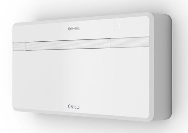 De nieuwste generatie monoblock airco’s De Unico Evo 30HP EVAN monoblock airco’s zijn de nieuwste generatie monoblock airco’s van Olimpia Splendid. De airco heeft een inverter waarmee zowel gekoeld als (bij)verwarmd kan worden. Ruimtes tot 65m3 kunnen eenvoudig gekoeld worden door het koelvermogen van 2,6kW. Geen storende buitenunit aan de gevel, enkel twee discrete ventilatieopeningen en een kleine afvoer voor het condenswater. Eenvoudig en snel te installeren — esthetisch verantwoord en technisch geavanceerd. Slimme functies Ervaar ultiem comfort met deze geavanceerde monoblock airco, uitgerust met slimme functies die zich aanpassen aan jouw leefomgeving. Dankzij de Auto-functie stemt het apparaat automatisch de werking af op de temperatuur in de ruimte. En met de Silent Mode geniet je van verkoeling met een geluidsniveau van slechts 30 dB(A), hierdoor is hij ideaal voor in de slaapkamer. Met de airco wordt standaard een afstandsbediening meegeleverd. Daarnaast is bediening via je smartphone of tablet mogelijk met de ‘OS Home’ app. Verbind de airco met je device via een wifi-verbinding en je kan de Unico Evo op afstand bedienen met je smartphone of tablet. Installatie De installatie van de Unico Evo hoeft niet gedaan te worden door een gecertificeerde F-gasinstallateur. Er hoeft namelijk geen koppeling tussen binnen- en buitenunit gemaakt te worden, want de buitenunit is niet aanwezig. Voor installatie is het nodig om twee gaten in de buitenmuur te boren en deze aan de monoblock airco te koppelen. Dit maakt de airco geschikt voor handige doe-het-zelvers of in situaties waarbij snelle plaatsing gewenst is. Voordelen Geen ontsierende buitenunit Zelf te installeren Fluisterstil Geschikt voor zomer én winter Kenmerken van design airco zonder buitenunit Olimpia Splendid Unico EVO 30HP EVAN Koelvermogen: 2,6 kW Verwarmingsvermogen: 2,4 kW Energieklasse: A+ (koelen), A (verwarmen) Geluidsniveau: Slechts 30 dB(A) in Silent Mode Koelmiddel: R32 met lage GWP Voor ruimtes tot: ± 30 m² Bediening: Touchscreen + afstandsbediening + Wi-Fi via app Functies: Koelen, verwarmen, ventileren, ontvochtigen Filtersysteem: Electrostatisch en actief koolstoffilter Installatie: Slechts twee ventilatiegaten in de muur nodig