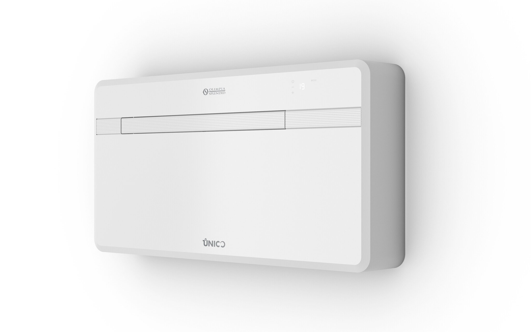 De nieuwste generatie monoblock airco’s De Unico Evo 30HP EVANX monoblock airco is de nieuwste generatie monoblock airco van Olimpia Splendid. De airco heeft een inverter waarmee zowel gekoeld als (bij)verwarmd kan worden. Ruimtes tot 32 m2 kunnen eenvoudig gekoeld worden door het koelvermogen van 3,1 kW. Geen storende buitenunit aan de gevel, enkel twee discrete ventilatieopeningen en een kleine afvoer voor het condenswater. Eenvoudig en snel te installeren — esthetisch verantwoord en technisch geavanceerd. Comfort het hele jaar door Met een koelvermogen tot 3,1 kW en een verwarmingsvermogen tot 2,7 kW, biedt de Unico EVO 30 HP comfort het hele jaar door. Dankzij de Twin Rotary Inverter-compressor en het gebruik van het milieuvriendelijke R32-koelmiddel is hij niet alleen krachtig, maar ook energiezuinig en duurzaam. Slimme functies Ervaar ultiem comfort met deze geavanceerde monoblock airco, uitgerust met slimme functies die zich aanpassen aan jouw leefomgeving. Dankzij de Auto-functie stemt het apparaat automatisch de werking af op de temperatuur in de ruimte. En met de Silent Mode geniet je van verkoeling met een geluidsniveau van slechts 30 dB(A), hierdoor is hij ideaal voor in de slaapkamer. Met de airco wordt standaard een afstandsbediening meegeleverd. Daarnaast is bediening via je smartphone of tablet mogelijk met de ‘OS Home’ app. Verbind de airco met je device via een wifi-verbinding en je kan de Unico Evo op afstand bedienen met je smartphone of tablet. Ideaal voor: Appartementen en monumentale panden Kantoren, winkels en studio's Ruimtes waar stilte en stijl belangrijk zijn Gebruikers die slimme bediening en duurzaamheid waarderen Kies voor comfort zonder compromis met de Unico EVO 30 HP EVANX Krachtige prestaties, strak design en géén buitenunit nodig Zonder buitenunit: slechts twee roosters zichtbaar aan de buitenmuur Koelen, verwarmen, ventileren en ontvochtigen in één apparaat Warmtepomp + elektrisch verwarmingselement voor extra ondersteuning bij lage temperaturen R32-koelmiddel: lage milieu-impact (GWP 675) Moderne bediening met Wi-Fi-module inbegrepen en Modbus RTU-aansluiting (BMS-klaar) Dubbel filtersysteem: elektrostatisch + actief koolstoffilter Zeer stil: geluidsniveau vanaf slechts 30 dB(A) in Silent Mode Volledig fronttoegankelijke constructie voor eenvoudige installatie en onderhoud De Unico EVO 30 HP EVANX is een geavanceerde airconditioner met warmtepompfunctie die geen buitenunit vereist – ideaal voor situaties waarin gevels beschermd zijn of waar plaatsing van een buitentoestel niet wenselijk is. Dankzij zijn slanke ontwerp, fluisterstille werking en efficiënte prestaties is deze monoblock airco dé oplossing voor zowel woningen als commerciële ruimtes.