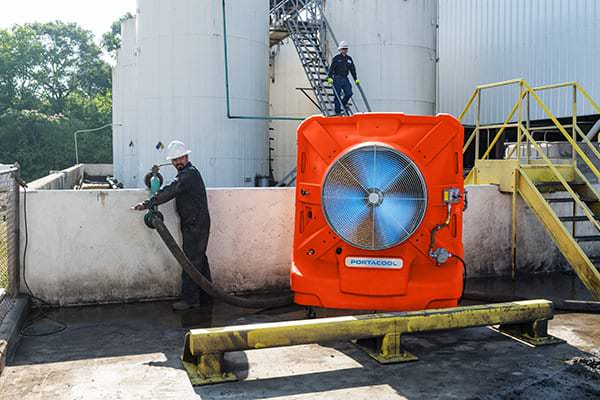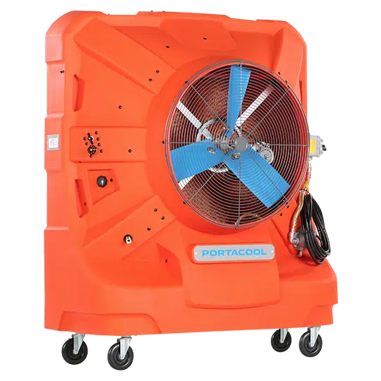 De Portacool Hazardous Location™ 260 industriële luchtkoeler is ontworpen om ruimtes te koelen waar in de lucht aanwezig gas of zwevend puin mogelijk brandbaar is. Alle elektrische componenten zijn afgeschermd en vonkbestendig uitgevoerd, waardoor ze intrinsiek veilig zijn. De mobiele luchtkoeler is uitgerust met afgedichte schakelaars, snoeren, motor en pomp om vonken te voorkomen. De behuizing is vervaardigd uit robuust gegoten polyethyleen plastic voor absolute bescherming tegen corrosie of roest.