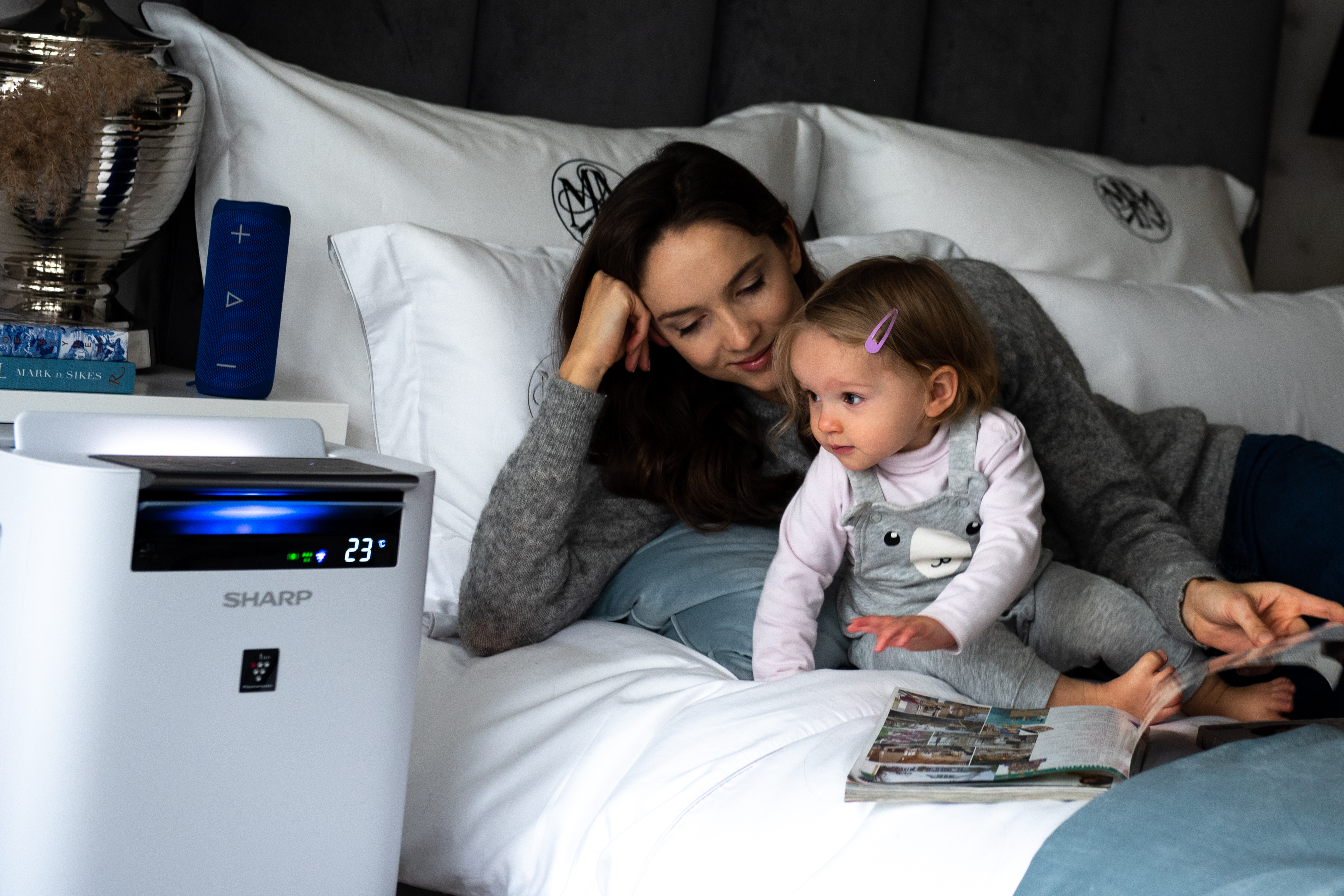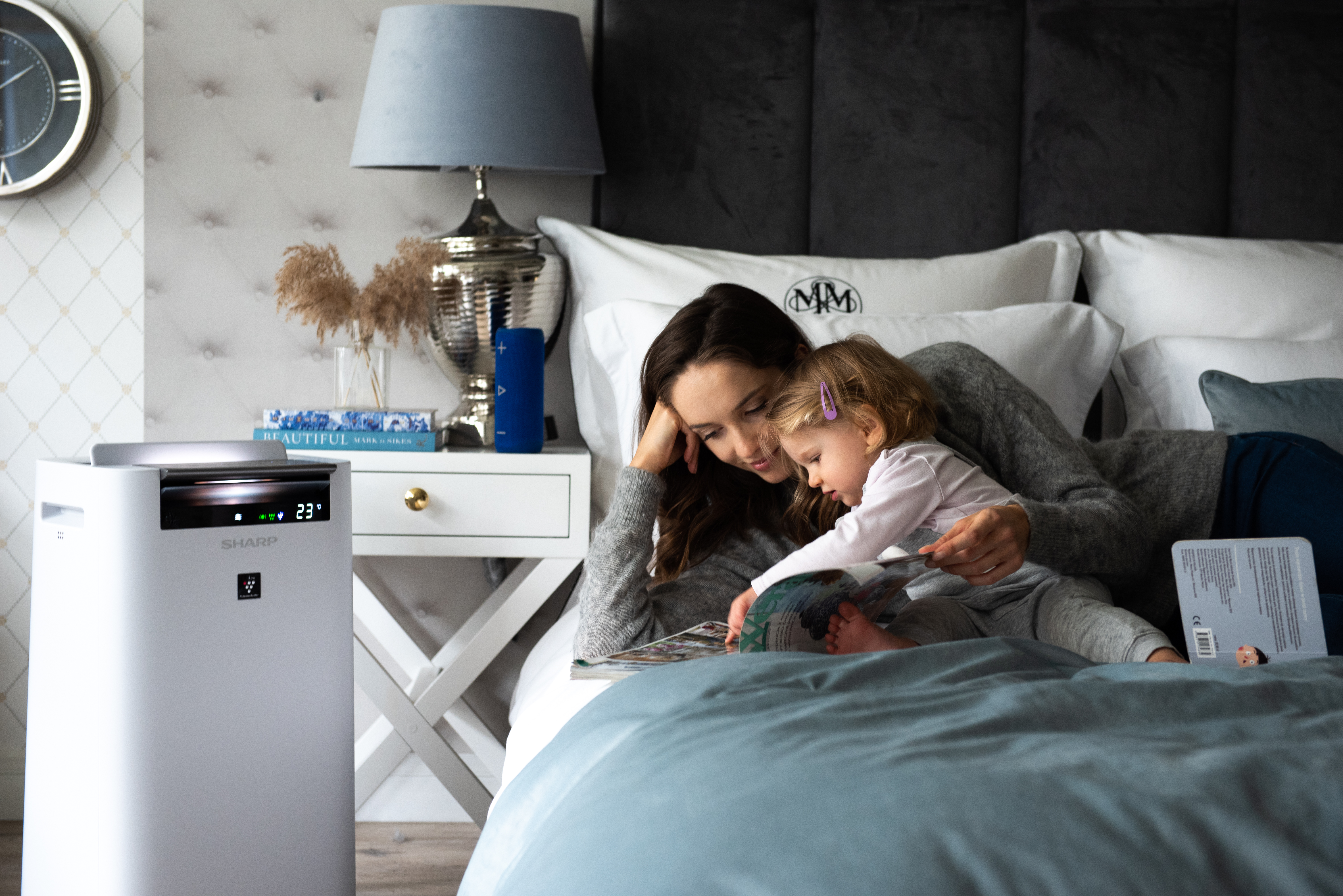 De Sharp UA-HG40E-L Luchtreiniger met bevochtigingsfunctie zuivert de lucht in ruimtes tot 28m² op snelle wijze dankzij de drie filtratieniveaus en geavanceerde ionendouche-modus.