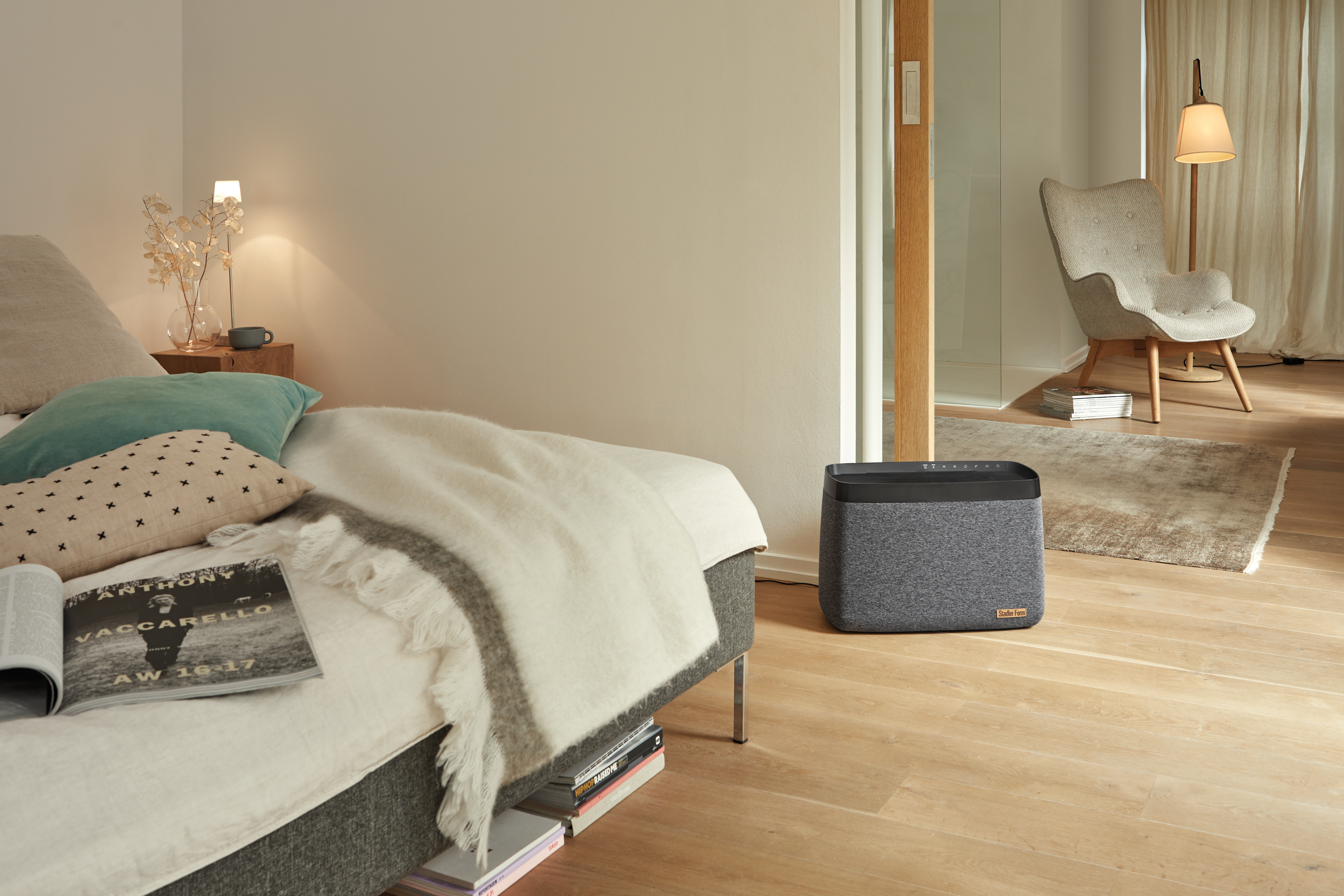 Karl Big – de luchtbevochtiger met power Luchtbevochtiger Stadler Form Karl Big behaalt snel en economisch het gewenste resultaat. In de automatische modus selecteert Karl Big zelfstandig het juiste bevochtigingsniveau. Hij brengt de luchtvochtigheid in korte tijd naar de gewenste waarde van 40-55%. Na het bereiken van de gezonde luchtvochtigheid controleert hij regelmatig of deze niet te ver daalt, en zal opnieuw vocht verspreiden als de lucht in huis weer te droog wordt. De efficiënte verdamper heeft een indrukwekkend waterreservoir van 11 liter. Karl Big is van bovenaf te vullen Karl Big is eenvoudig vanaf de bovenzijde te vullen, dit is een groot voordeel voor een luchtbevochtiger. Via een goed bereikbare klep aan de bovenzijde is vullen in een paar seconden gedaan. Het maakt de Stadler Form Karl Big bevochtiger gebruiksvriendelijk en hygiënisch. Uitgebreide bediening, via het display of via uw smartphone Bedien luchtbevochtiger Karl Big op het apparaat zelf, of stel hem in via een app op uw smartphone. Waar u ook bent, controleer zijn werking en stel de luchtvochtigheid in zodat de omstandigheden optimaal blijven terwijl u weg bent. Voor een ongestoorde nachtrust kunnen de led-functielampen van Karl Big worden gedimd of helemaal uitgeschakeld. De vier belangrijkste kenmerken van Stadler Form Karl Big Efficiënte bevochtiging met een laag stroomverbruik Van bovenaf vullen, ook tijdens bedrijf Bedienbaar via smartphone-app Een indrukwekkend waterreservoir van 11 liter Stadler Form Karl Big eigenschappen Automatische uitschakeling Hygrostaat LED-dimmer Herinnering filterwissel Compatibel met Oskar-filterpakket Gemakkelijk navulbaar tijdens gebruik Natuurlijke bevochtiging door verdampingstechnologie, tot 1100 g per uur Functiecontrole via smartphone-app Waterniveau venster Accessoires: Water Cube™, Luchtbevochtigerfilters Specificaties Bevochtigingscapaciteit: tot 1100 g/uur Kamergrootte: tot 150 m² / 375 m³ Tankinhoud: 11 liter Vermogen: 2.4 – 40 W, 4 standen Apparaatbediening via app