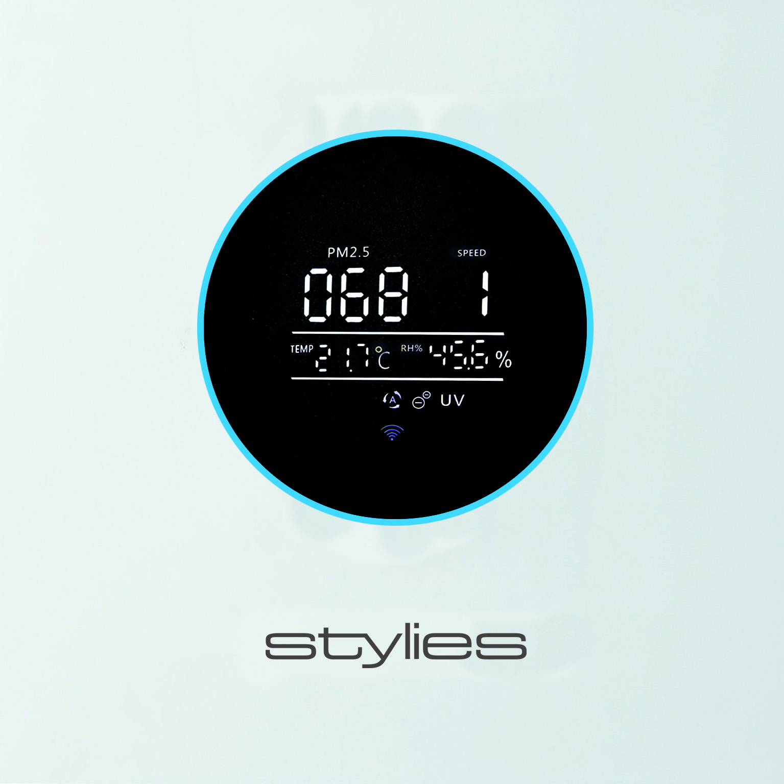 De Stylies Alpha luchtreiniger is 's werelds eerste luchtreiniger met een gecertificeerde SARS-COV-2-filtratiesnelheid van 100%. Stylies Alpha bedien je via het bedieningspaneel, met de afstandsbediening of via een app op je smartphone. Zijn stijlvolle LED verlichting geeft de luchtkwaliteit aan.