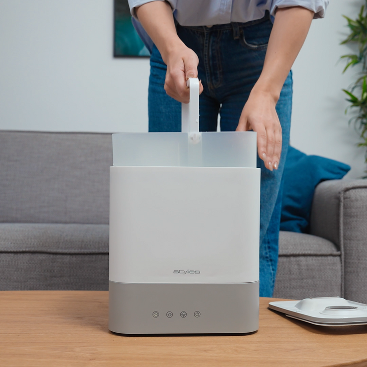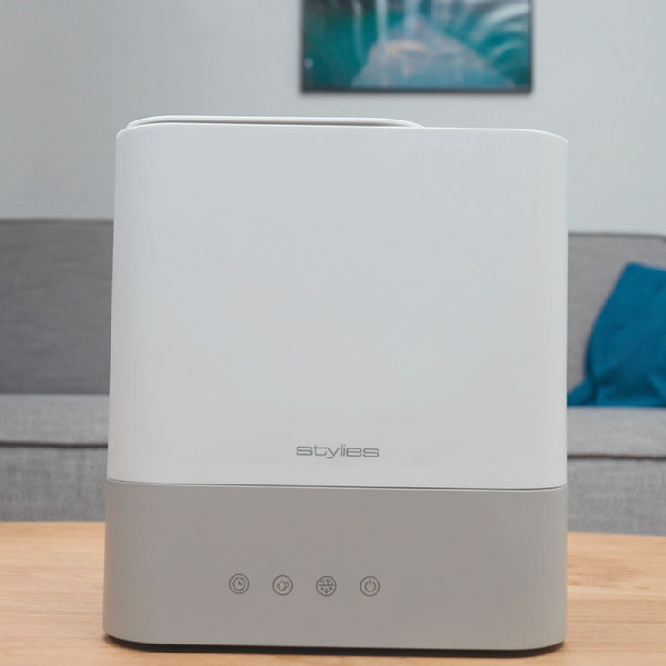 Ondanks zijn compacte en moderne ontwerp levert de Stylies Astra een indrukwekkende bevochtigingscapaciteit tot 400 ml per uur, waardoor hij geschikt is voor ruimtes tot 55 m². Als warmnevel-luchtbevochtiger verwarmt en steriliseert hij het water op hoge temperatuur, wat zorgt voor een hygiënische bevochtiging en een gezonder binnenklimaat. De Astra beschikt over twee bevochtigingsniveaus, een automatische uitschakeling bij leeg waterreservoir en een programmeertimer van 4 of 8 uur. Dankzij de aromafunctie en negatieve ionisatie draagt het apparaat bovendien bij aan een frisse en aangename lucht. Voor extra comfort is er een nachtmodus zonder storende verlichting en een handige zelfreinigingsmodus die kalkaanslag helpt verminderen. Een krachtige, veilige en gebruiksvriendelijke oplossing voor wie snel en effectief de luchtvochtigheid in huis wil verbeteren.