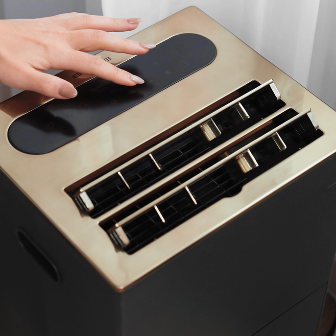 De Mercure beschikt over drie standen. Ontvochtigen, ventileren en wasgoed drogen. Dankzij de wieltjes is hij eenvoudig te verplaatsen. De luxe antracietkleurige afwerking met geborsteld goudkleurig bedieningspaneel geeft een elegante uitstraling en past moeiteloos in elk modern interieur. Functionaliteit en design komen perfect samen.