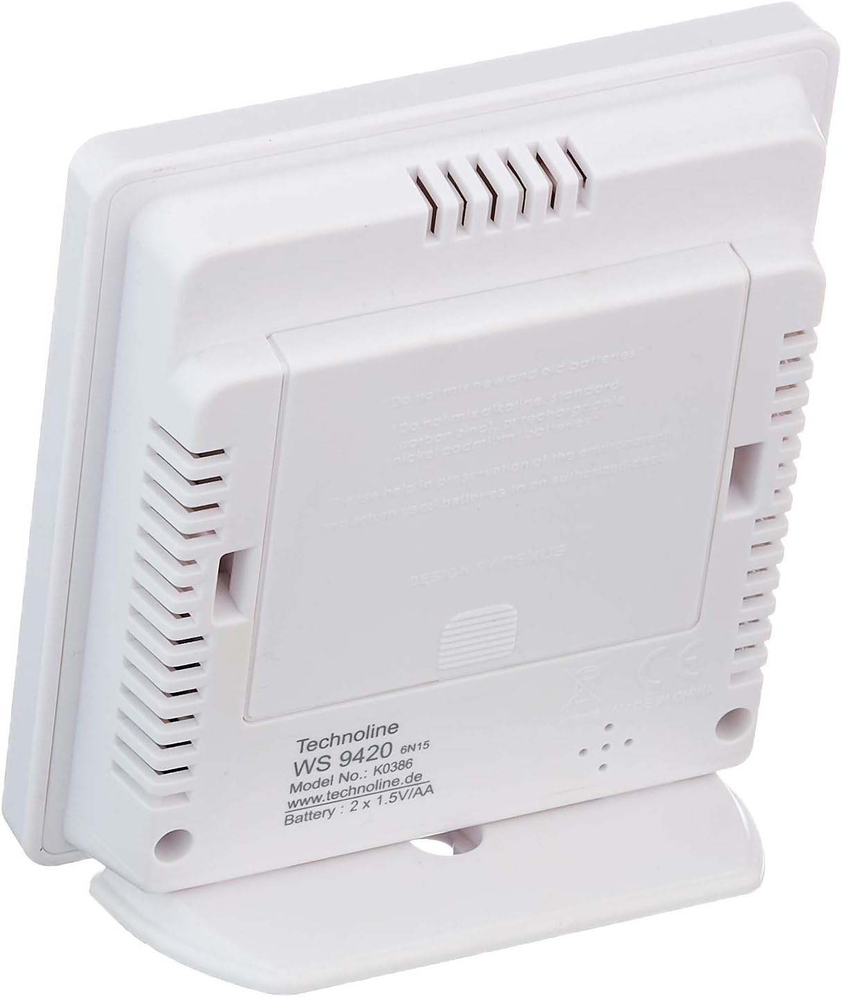 Technoline WS 9420 is eenvoudig aan de muur te bevestigen, maar hij kan ook op tafel staan. Hij toont de temperatuur en de luchtvochtigheid binnenshuis.