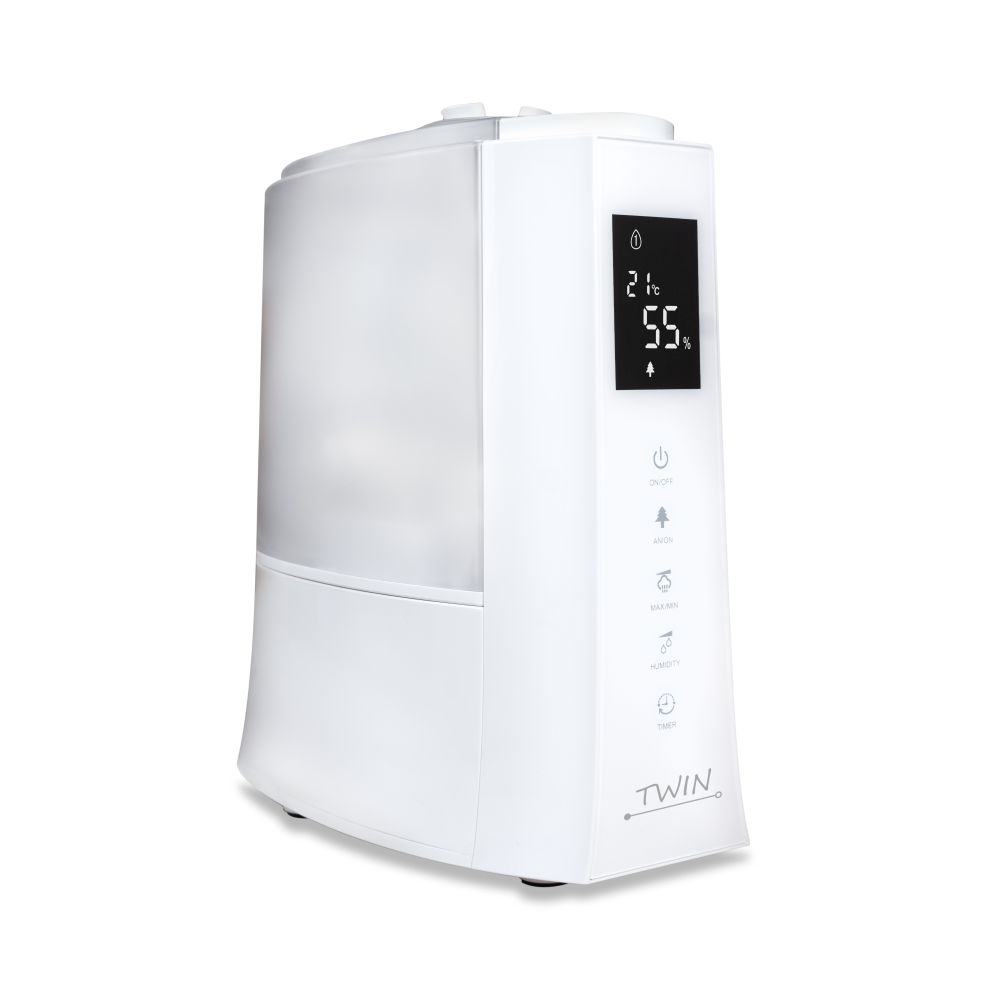 Te droge lucht kan onder andere de slijmvliezen irriteren en zo een aantal gezondheidsproblemen veroorzaken zoals droge, prikkelhoest en verstopte neus. Het Airbi assortiment biedt luchtbevochtigers van topkwaliteit die tot de beste in de branche behoren, zoals deze ultrasone luchtbevochtiger met ionisator Airbi Twin. Ultrasone luchtbevochtiger Airbi Twin is een effectief toestel om het binnenklimaat op een gezonde luchtvochtigheid te brengen. De Airbi Twin werkt ideaal in ruimtes tot 70 m³ en is leverbaar in de kleuren zwart en wit.