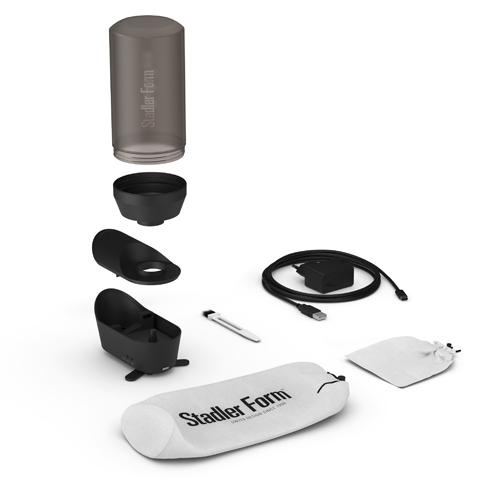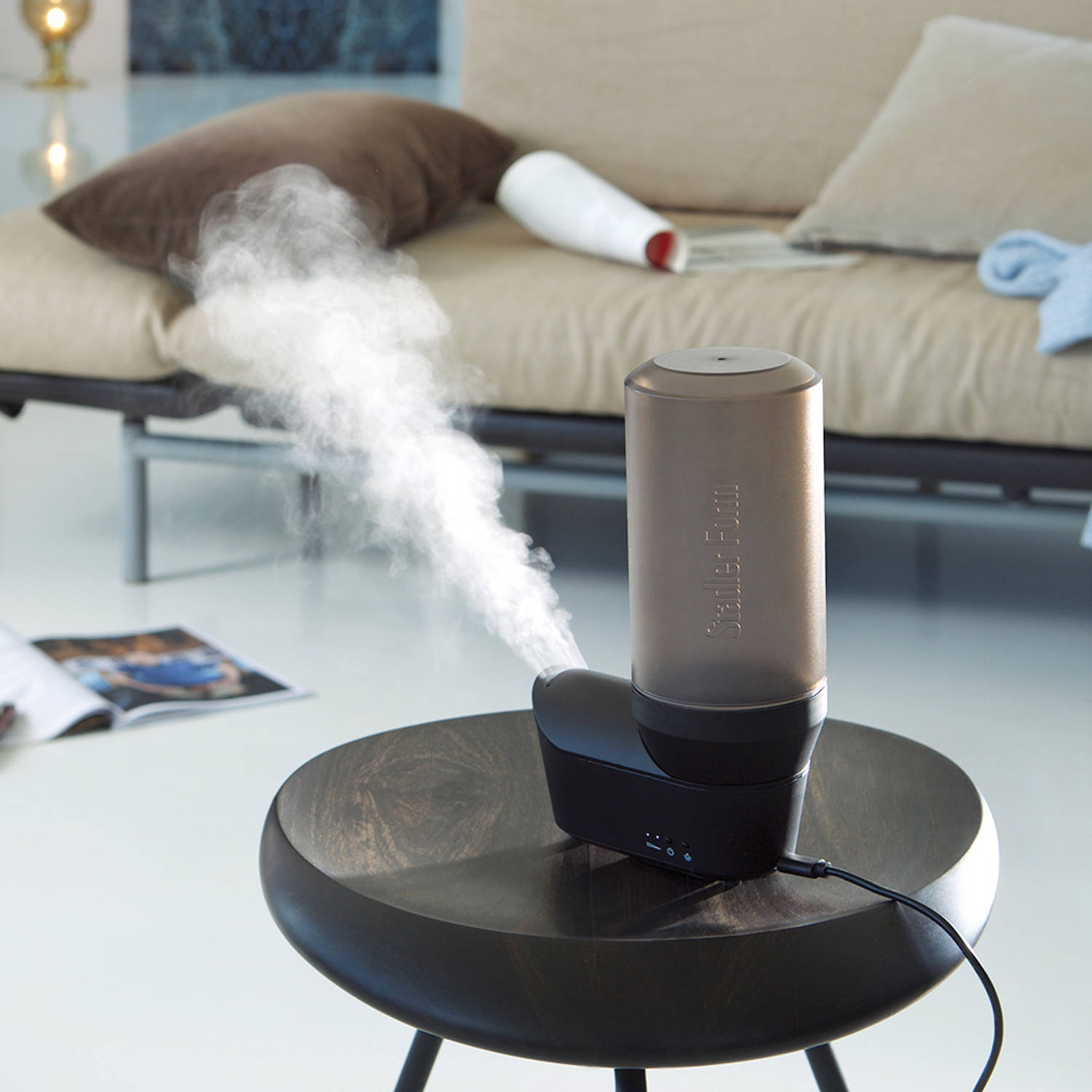 Reis luchtbevochtiger Stadler Form Emma is uw persoonlijke, compacte bevochtiger. Een ultrasone luchtbevochtiger met USB-kabel voor mobiel gebruik, en een adapter voor thuisgebruik. Luchtbevochtiger Emma is licht en compact ontworpen, haar behuizing kan in de fles worden opgeslagen om ruimte te besparen. Emma is verpakt in het meegeleverde reistasje, zij is uw ideale metgezel op reis en op elke flexibele werkplek. Verkrijgbaar in de kleuren Zwart en Wit!