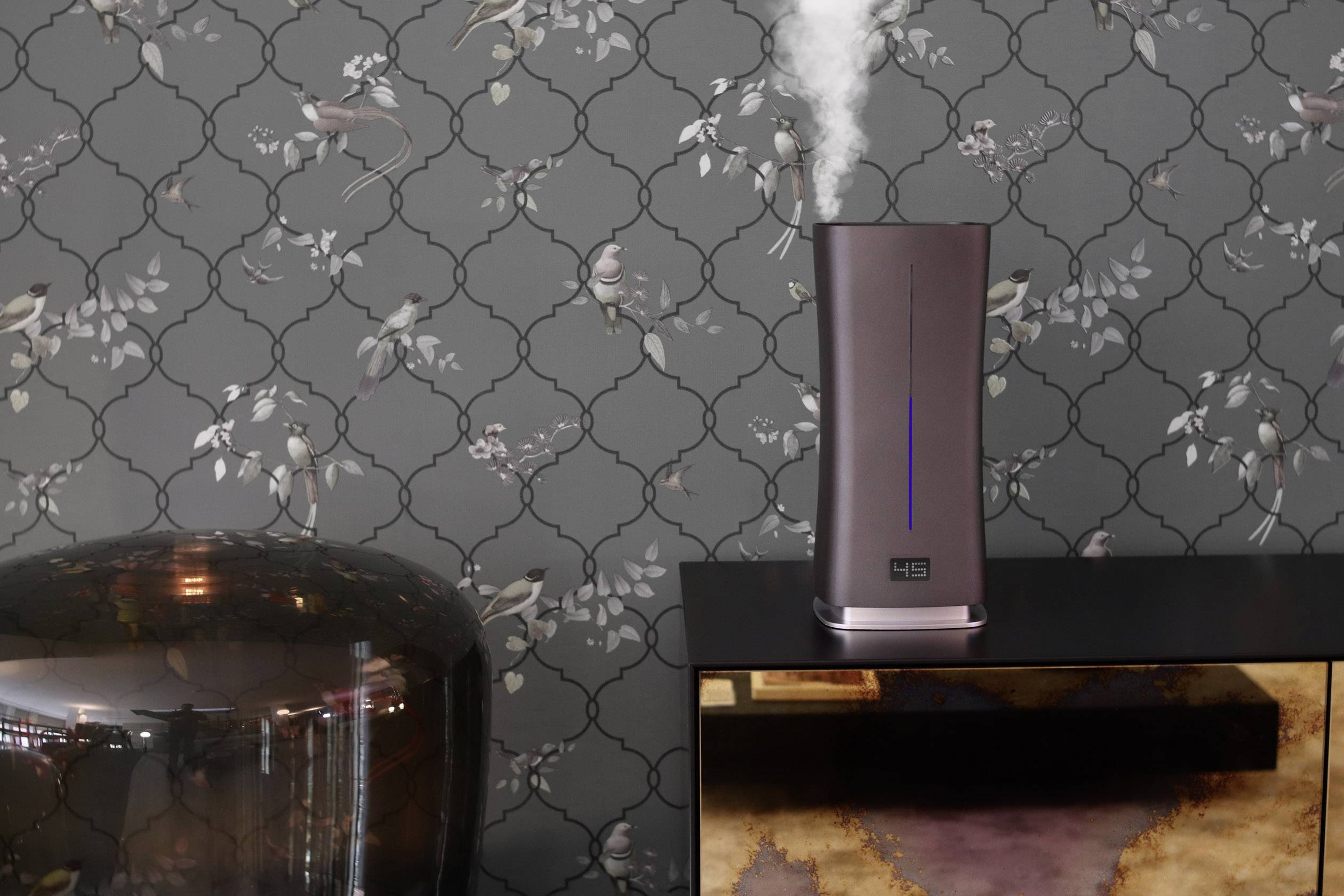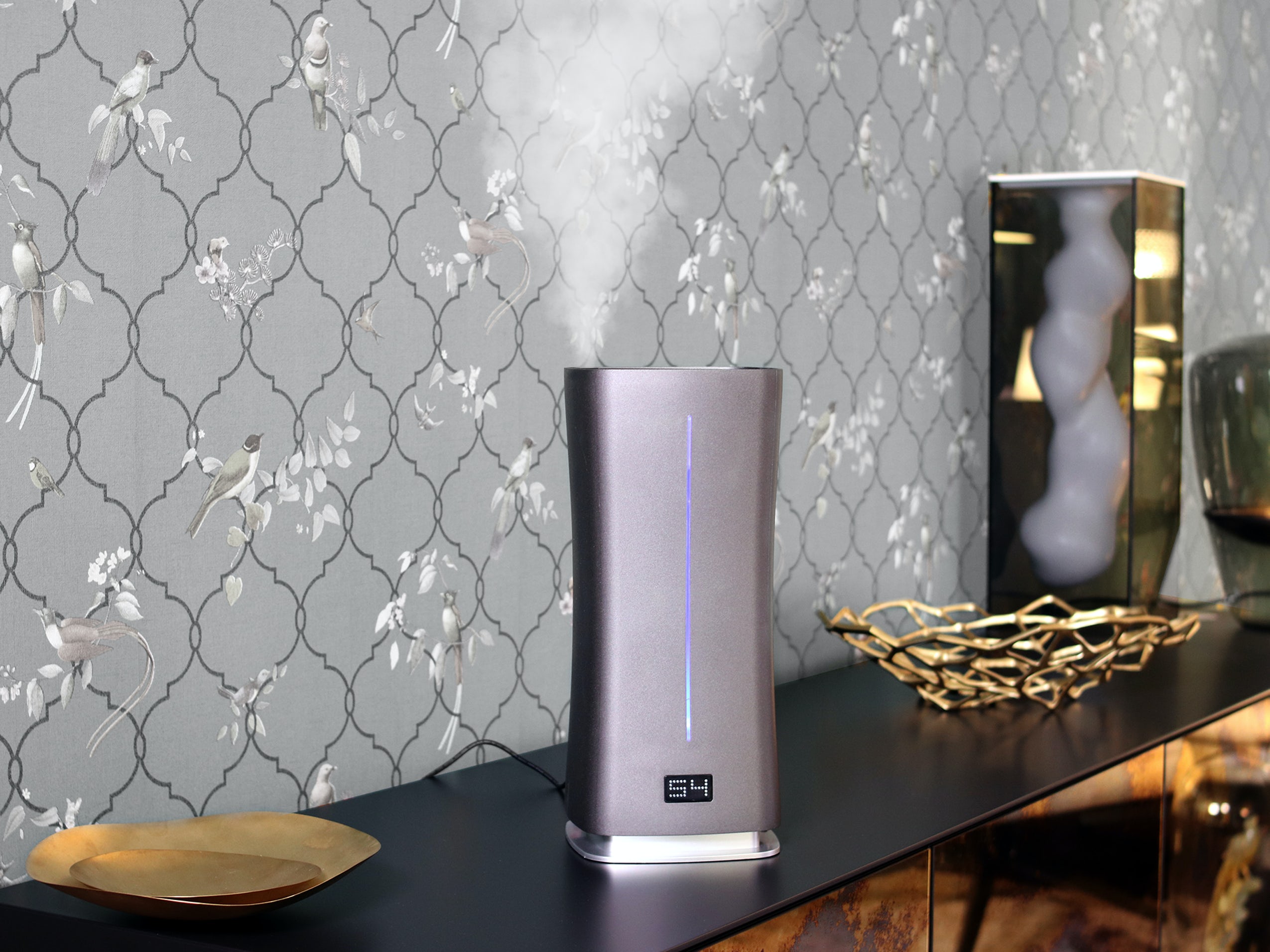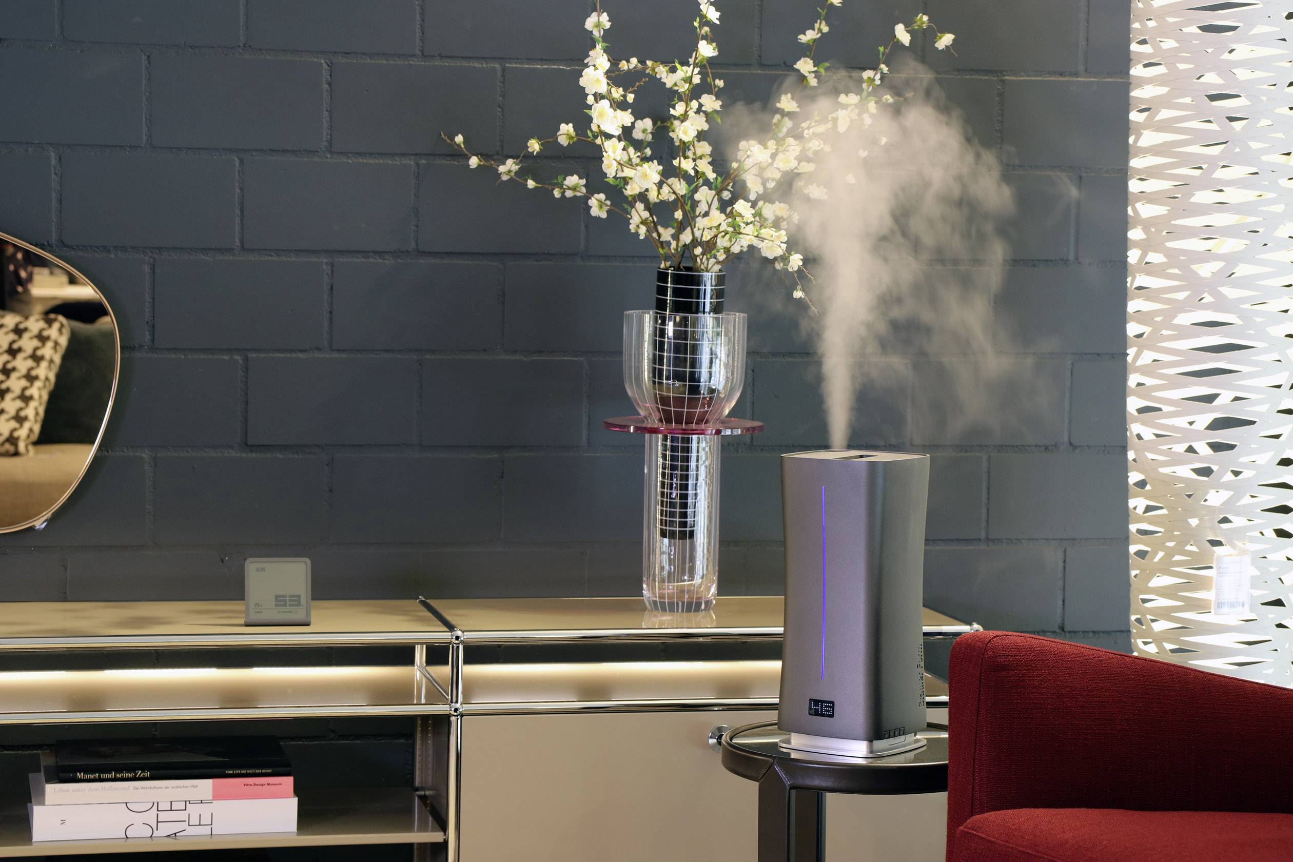 Digitale, ultrasone luchtbevochtiger Stadler Form Eva Little weet zelf wanneer de luchtvochtigheid in ruimtes tot 50 m² te laag is. Deze ultrasone luchtbevochtiger blaast naar wens koude of warme mist de ruimte in. Je stelt de gewenste luchtvochtigheid in tussen 30 - 75% en de bevochtiging verloopt vanzelf. Verkrijgbaar in de kleuren zwart, wit en titanium! StadlerForm Swiss design since 1998