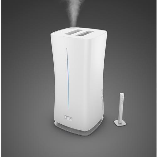 Digitale luchtbevochtiger Stadler Form Eva weet zelf wanneer de luchtvochtigheid in ruimtes tot 80 m² te laag is. Deze ultrasone luchtbevochtiger met draadloze vochtsensor blaast naar wens koude of warme mist de ruimte in. Je stelt de gewenste luchtvochtigheid in tussen 30 - 75% en de bevochtiging verloopt vanzelf. Ontworpen door Matti Walker. Verkrijgbaar in de kleuren zwart en wit!