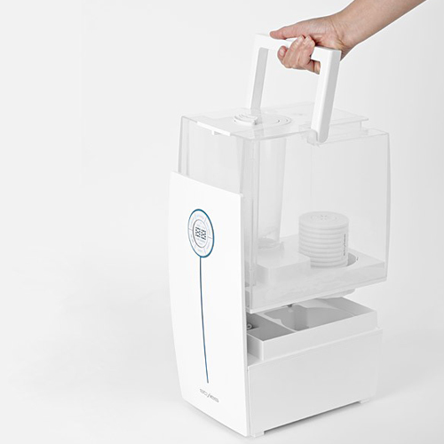 Ultrasone bevochtiger: Stylies Hera voor luchtbevochtiging met kleine waterdruppeltjes (nevel). De fijne nevel wordt zeer effectief verspreid in de lucht. Deze compacte Stylies luchtbevochtiger heeft een ingebouwde hygrostaat. Verkrijgbaar in de kleuren Zwart en Wit!