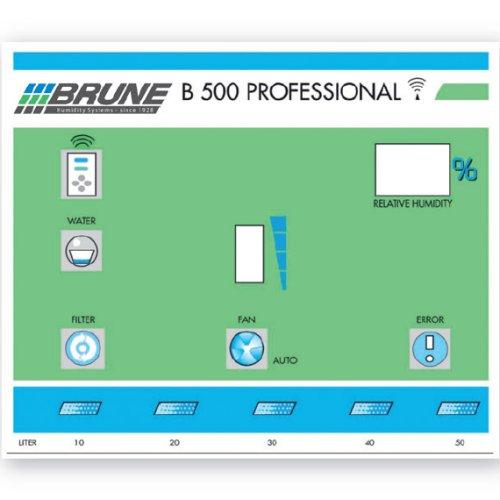 Brune B500 PRO is een verplaatsbare luchtbevochtigingsinstallatie met een hoge bevochtigingscapaciteit. Deze professionele bevochtiger is geschikt voor volautomatische bevochtiging in diverse ruimten. Ideaal voor luchtbevochtiging in bijvoorbeeld een grote woning, kantoor, museum, opslagruimte, industriële ruimte, klimaatruimte of serverruimte. Luchtbevochtiger Brune B500 PRO bevochtigt de lucht op basis van koudwater-verdamping. Hierdoor ontstaat geen kalkafzetting of condensvorming in de ruimte. Overbevochtiging is niet mogelijk met deze bevochtigingsmethode. De elektronisch regelbare luchtbevochtiger werkt vrijwel geruisarm. De bijzonder stille radiaalventilator heeft 4 standen, maar is ook volautomatisch regelbaar. De interne gekalibreerde hygrostaat regelt de gewenste relatieve vochtigheid nauwkeurig. Dankzij de afstandsbediening is met deze luchtbevochtiger een goede bewaking van de relatieve vochtigheid ook op afstand mogelijk. De ingestelde waarden kunnen niet door derden veranderd worden dankzij de aanwezige beveiliging. Het overzichtelijke bedieningspaneel informeert u over instellingen als: waterniveau, ventilatiestand en relatieve vochtigheid. Het zelfdiagnose-systeem geeft aan wanneer het filter vervangen moet worden. Deze Brune bevochtiger is voorzien van een alarmrelais. Meldingen kunnen direct aan een centrale of externe bron worden doorgegeven. Een Brune B500 bevochtiger is een luchtbevochtiger en luchtreiniger in één. Naast de grondige luchtbevochtiging, filtert en reinigt het apparaat ook de lucht. Stof wordt verwijderd en te veel statische elektriciteit in de lucht wordt voorkomen. Deze professionele, volautomatische bevochtiger maakt gebruik van normaal leidingwater. Het reservoir heeft een inhoud van 50 liter dat automatisch wordt gevuld. In geval van een calamiteit is een overstroming niet mogelijk door diverse veiligheidssystemen zoals watersensor, opvangreservoir en de veiligheid drukslang. Naast automatische watertoevoer heeft luchtbevochtiger Brune B500 PRO een automatisch spoelsysteem met afvoer. Luchtbevochtiger Brune B500 is gemaakt van zeer stevig kunststof en beschikt over 4 stevige zwenkwielen. Voor het behouden van een goede waterkwaliteit zijn ALLE bevochtigers uit de Brune B500-serie (STD/AWZ/PRO) voorzien van UV-C waterbehandeling en een kalkomvormer. Deze Brune B500 PRO luchtbevochtiger kan indien uitgerust met Brune WebControl via internet op afstand bediend worden. De Brune WebControl App geeft informatie over de bevochtiger en kan de bevochtiger aansturen. De informatie bestaat o.a. uit de gewenste en gemeten relatieve vochtigheid, ventilatorsnelheid, waterniveau en foutberichten. De App werkt in combinatie met een browser (bijv. Chrome, Internet Explorer, Safari). UV-C Waterbehandeling De UV-C lamp - lage druk kwik - heeft een golflengte die de meeste microben (o.a. bacteriën, algen, schimmels) doodt. Op deze wijze wordt het water voordat het verdampt efficiënt gedesinfecteerd. Kalkomvormer Om afzetting van kalk in de luchtbevochtiger te voorkomen wordt het water door de kalkomvormer geleid. De kalkomvormer is voorzien van sterke magneten waarmee de moleculaire structuur van het kalk wordt veranderd waardoor het zich moeilijker kan afzetten op onderdelen in de luchtbevochtiger. Spoelen (Flush) Het reinigen van luchtbevochtiger Brune B500 PRO is uiterst eenvoudig. Het spoelen kan handmatig worden gestart via de afstandsbediening of automatisch, instelbaar tussen 1 en 7 dagen. Het water samen met de verontreinigingen en kalkafzettingen wordt opgepompt en afgevoerd en daarna vervangen door vers water. Deze bevochtiger is geschikt voor het verhogen van de luchtvochtigheid in middelgrote tot grote ruimten. Indien gewenst kunnen meerdere Brune B500 luchtbevochtigers worden geplaatst zodat de ideale luchtvochtigheid snel bereikt wordt, en deze optimaal in stand wordt gehouden. Eén enkele Brune B500 bevochtiger is reeds geschikt voor een ruimte van 350 m2 of 875 m3. Andere uitvoeringen zijn de Brune B500 STD zonder automatische watertoevoer en automatische spoeling, en de Brune B500 AWZ mét automatische watertoevoer, maar zonder automatische spoeling.