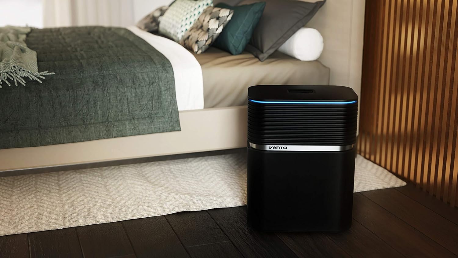 De moderne esthetiek van uw AeroStyle wordt versterkt door een discrete, apart in te schakelen LED-lichtlijst, die oplicht tijdens de werking en door te knipperen waarschuwt voor een te laag waterpeil. De led-lichtlijst Ambiance Light van je AeroStyle bedien je eenvoudig met de verkrijgbare Venta Home App en stel deze in de kleur naar u eigen keuze.