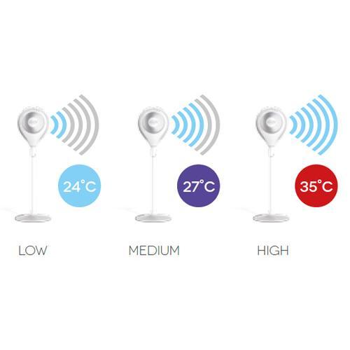 De Argoclima Smart Fan staande ventilator is de enige in zijn soort die daadwerkelijk 360° ronddraait en zo zorgt voor een optimale luchtverdeling. Prachtig design, ideaal voor verkoeling in kleinere ruimtes. Uitgebreide functies! Naast 3 vaste snelheden past de 360 graden ventilator automatisch zijn snelheid aan met de ECO Smart functie. Uitgerust met body-sensor, timer en display.