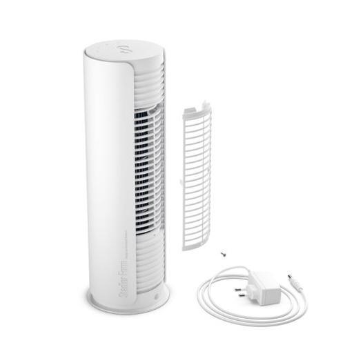 Als alternatief kunt u met het touch screen een niveau kiezen dat varieert van zachte bries tot sterke wind. Met zijn slanke postuur neemt de Satdler Form Peter Little weinig ruimte in en is hij ideaal, zelfs als er maar een beperkte ruimte beschikbaar is. Het wasbare luchtinlaatfilter biedt betrouwbare bescherming tegen stofdeeltjes. Peter Little is het ideale gezelschap voor je slaapkamer, op je bureau of naast je bank. Specificaties: Kleur: Wit Systeem: AC ventilator Heeft vier verschillende standen Door het unieke ontwerp bespaart hij veel ruimte Heeft een ‘natuurlijke bries’ modus Heeft een oscillerende modus Komt met een touchscreen Energiegebruik: 4–9 Watt / 24 Volt via meegeleverde adapter Afmetingen (B/H/D): Ø 109 x 361 mm, diameter voet: Ø 117 mm Gewicht: 1.2 kg Geluidsniveau: 28–54 dB(A) Type: tafelventilator