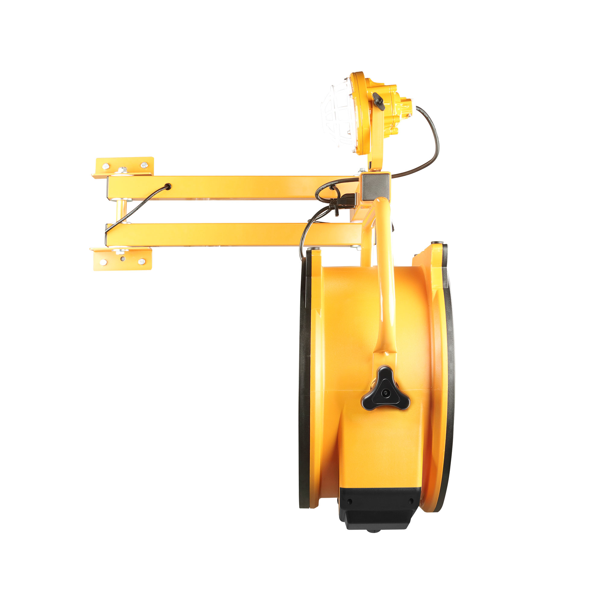 De XPOWER FA-420K2 is een krachtige industriële ventilator die speciaal is ontwikkeld voor gebruik in magazijnen, laadperrons en vrachttrailers. Deze complete ventilatiekit combineert een sterke 18 inch axiaalventilator, een 40 inch zwenkbare wandarm en een heldere LED-spot, waardoor zowel luchtcirculatie als verlichting in één oplossing worden geboden. Met een krachtige luchtstroom tot 3.600 CFM, 5 instelbare snelheden en een praktische timerfunctie zorgt de FA-420K2 voor gerichte koeling en ventilatie tijdens het laden en lossen van goederen. Dankzij het robuuste ontwerp en de opvallende veiligheidsgele behuizing is deze ventilator ideaal voor intensief gebruik in professionele en industriële omgevingen.
