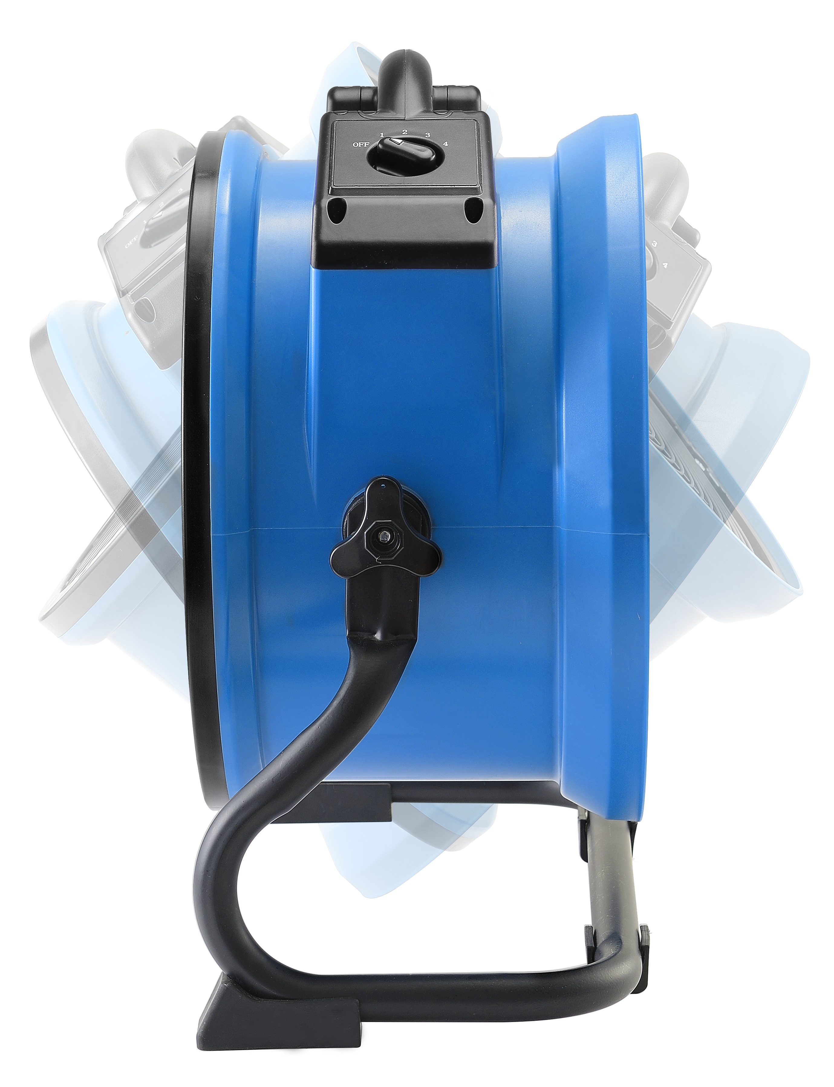 XPOWER FC-300 Professionele Air Circulator Utility Fan De XPOWER FC-300 is een professionele heavy duty ventilator die uitblinkt in kracht, veelzijdigheid en efficiëntie. Met een luchtstroomcapaciteit tot 3568 m3/uur en een energiezuinig verbruik van slechts 1 ampère, is dit de ideale oplossing voor snelle droging en effectieve ventilatie in werkplaatsen, magazijnen, bouwplaatsen of na waterschade. Uitgerust met een 1/4 pk motor en een 4-standen schakelaar, kunt u eenvoudig het gewenste luchtvolume instellen voor elke toepassing. Dankzij de 3-uur “Set-N-Forget” timer werkt de ventilator zelfstandig, zonder dat u zich zorgen hoeft te maken over het uitschakelen. Geavanceerde luchtgeleider-technologie De robuuste behuizing van geïnjecteerd polypropyleen maakt de FC-300 lichtgewicht maar duurzaam, en in combinatie met de stevige rack/standaard geniet u van volledige 360° luchtstroomrichting. De geavanceerde luchtgeleider-technologie zorgt daarbij voor een gelijkmatige en krachtige verspreiding van de lucht. Praktisch gebruik staat centraal: de 3 meter heavy-duty oprolkabel en de ergonomische Grab-N-Go handgreep maken transport eenvoudig. Bovendien kan de ventilator tot 5 units hoog gestapeld worden voor ruimtebesparende opslag.