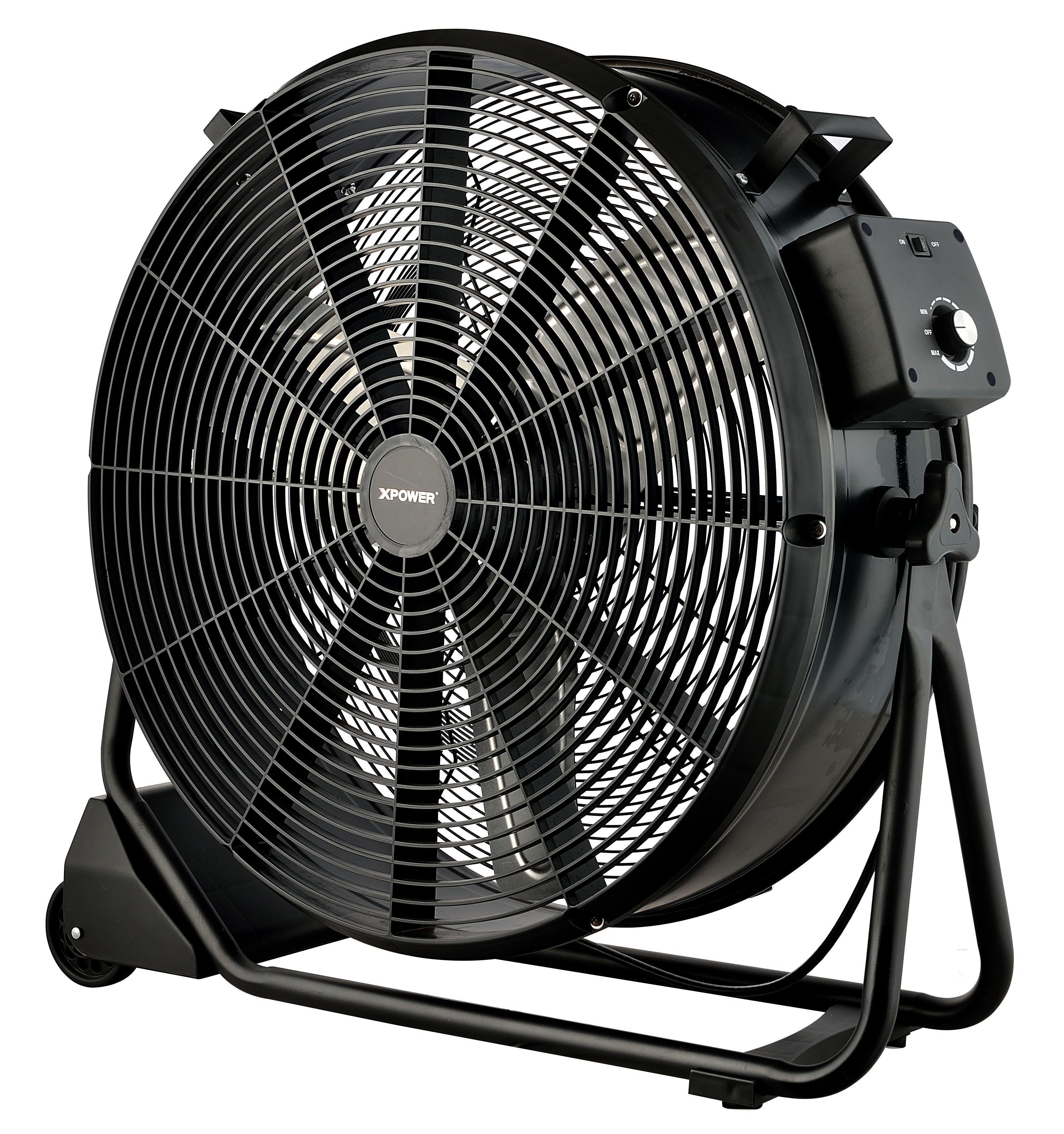 XPOWER FD-630DC Drum Fan – Krachtige industriële ventilator met brushless DC-motor De XPOWER FD-630DC Drum Fan is de ultieme oplossing voor krachtige en efficiënte ventilatie in veeleisende omgevingen zoals magazijnen, werkplaatsen, garages of landbouwschuren. Dankzij de geavanceerde 1/2 PK borstelloze DC-motor levert deze ventilator een indrukwekkende luchtstroom tot 9600 m³/u), terwijl hij slechts maximaal 1,8 ampère verbruikt. Dit maakt hem energiezuinig zonder in te leveren op prestaties. Met de traploze snelheidsregeling past u eenvoudig de luchtstroom aan naar de behoefte van de ruimte: van een zachte luchtcirculatie tot een krachtige ventilatiestroom. Bovendien kan de ventilator over een hoek van 200° worden gekanteld, zodat u de lucht precies richt waar dat nodig is. De robuuste metalen constructie is gebouwd voor intensief gebruik en voorzien van een stevig rack met soepele transportwielen en een praktische handgreep. Dit garandeert maximale mobiliteit en flexibiliteit, zelfs in grotere ruimtes of bij professioneel gebruik. Daarnaast voldoet de FD-630DC aan strenge veiligheidsnormen: hij is ETL/CETL-gecertificeerd en voldoet aan de OSHA-vereisten, wat extra zekerheid biedt bij dagelijks gebruik in industriële en commerciële toepassingen. Belangrijkste kenmerken Krachtige luchtstroom tot 9600 m³/u Energiezuinig: slechts 1,8 A verbruik dankzij de brushless DC-motor Traploze snelheidsregeling voor maximale controle 200° verstelbare kantelhoek voor gerichte luchtcirculatie Robuuste metalen behuizing met duurzame afwerking Mobiel en praktisch: stevig rack met wielen en handgreep Veiligheid gegarandeerd: ETL/CETL-gecertificeerd, voldoet aan OSHA