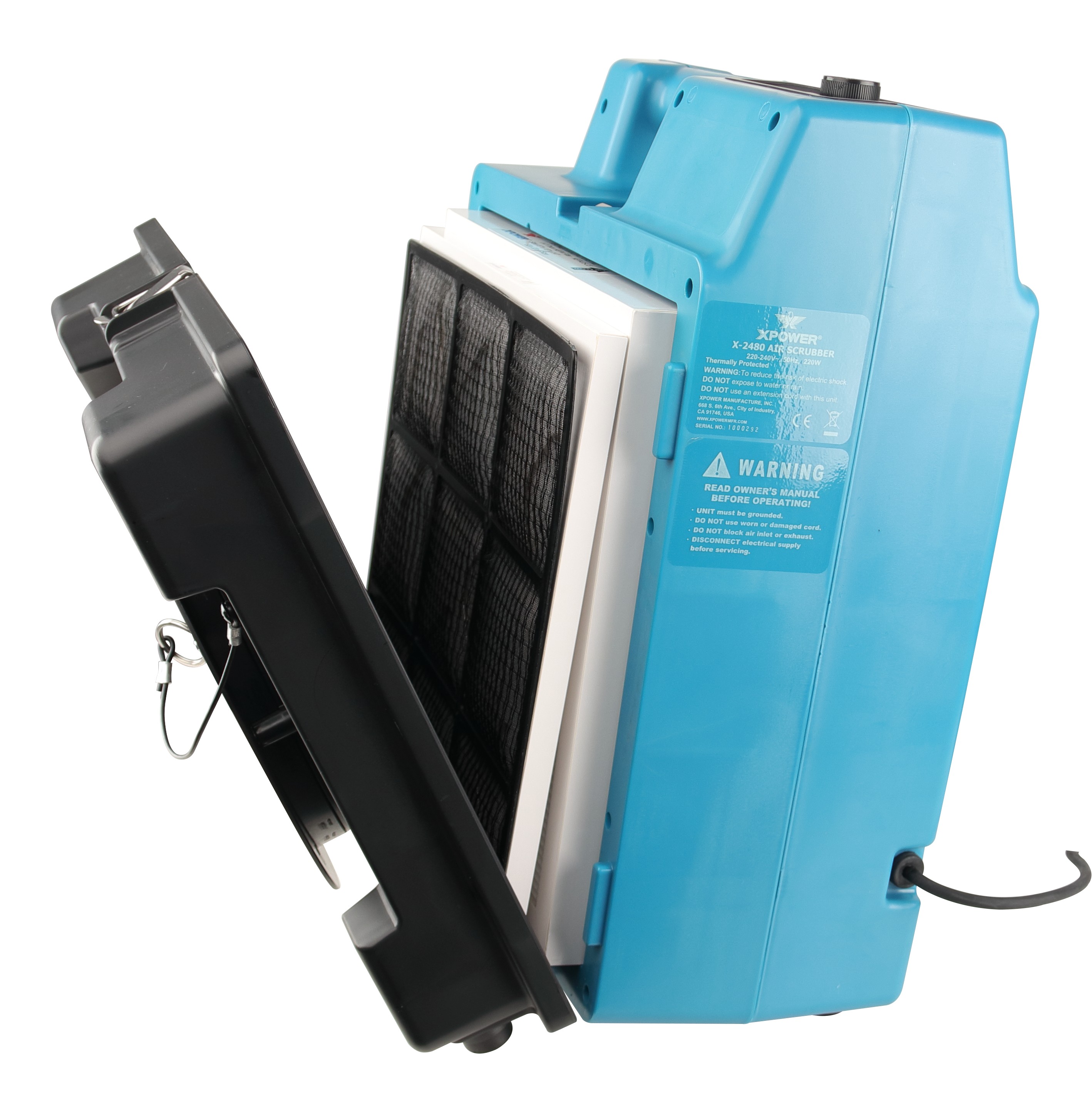 Klein maar krachtig, de nieuwe XPOWER X-2480 levert professionele luchtreiniging in een super compact en draagbaar ontwerp. Met een krachtige ½ HP externe rotor inductiemotor produceert dit 3-traps commerciële filtratiesysteem 935 m3/uur met minder dan 3,0 ampère verbruik. Ontwikkeld om de binnenluchtkwaliteit op uiteenlopende werklocaties te herstellen: de X-2480 met HEPA-filter verwijdert effectief verontreinigingen, zwevende deeltjes en submicron stof dankzij de geavanceerde 3-traps filtratietechnologie. Het eerste stadium met wasbaar en herbruikbaar nylon voorfilter verlengt de levensduur van de primaire filters. Het tweede stadium met geplooid mediamateriaal verwijdert extra onzuiverheden, en het echte HEPA-filter vangt 99,97% van alle deeltjes van 0,3 micron en groter. Extra functies zijn onder andere: een vijfstanden-snelheidsschakelaar en een passend schuimkapje om verontreinigingen vast te houden. De gelipte luchtuitlaat kan eenvoudig worden gekoppeld aan een slang voor het kanaliseren van gezuiverde lucht of het creëren van negatieve luchtdruk. Stapelbaar en licht van gewicht voor eenvoudig transport, is de robuuste X-2480 ideaal voor zelfs de zwaarste waterschade- en bouwprojecten.