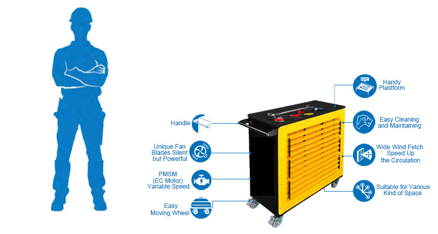 Op zijn werkblad leg je eenvoudig je gereedschap neer, de ventilator is multifunctioneel. Ya Suh Dar M704-FE is gepoedercoat, super slijtvast, stijlvol en mooi.